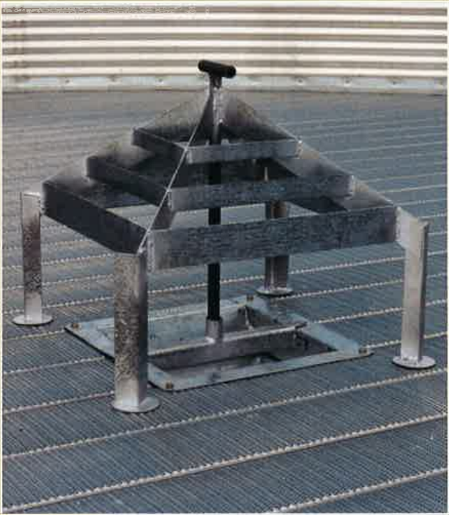 - Conception unique pour casser les morceaux : Le WELL-GARD est conçu pour couper ou briser les morceaux qui pourraient bloquer le puits de déchargement du silo. La forme pyramidale du garde protège contre les morceaux résistants qui ne se brisent pas, permettant au grain de continuer à circuler autour et dans le puit.